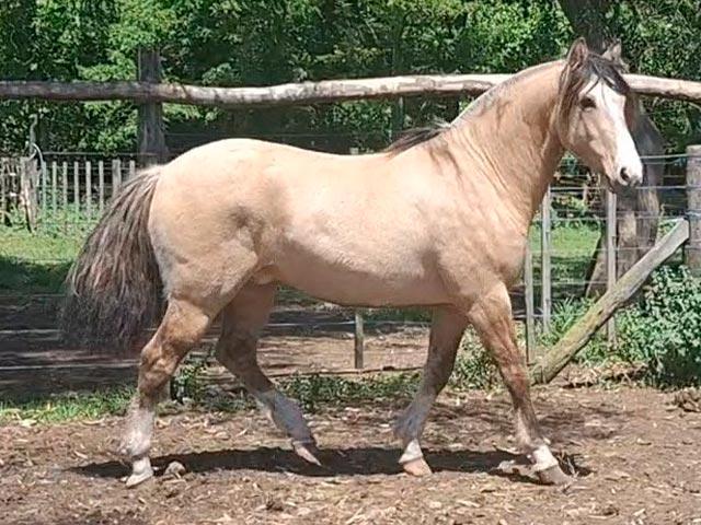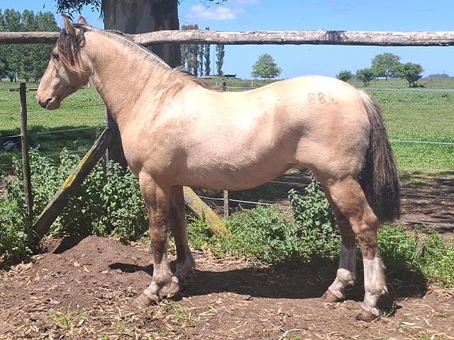 Muy lindo potro bayo, de gran estructura. Es hijo de Mañanero Mago, padrillo bien sellado, que tiene un pedrigree excepcional con Facon y Tintolio en línea paterna en madre Zapateado. Su madre una importante yegua de gran morfologia hija del Patron Viejo Descornador, padre que dejo muy buena descendencia en varias cabañas.
